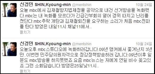 이러한 가운데 신경민 민주통합당 의원이 어제 MBC에 출연하였습니다. 신경민 의원은 MBC에서 30년 동안 근무를 하다가 뉴스 앵커에서 강제 하차된지 3년 만에 MBC 화면에 재등장한 것입니다. 신경민 의원이 MBC에 출연한 이유는 아이러니하게 MBC를 비판하기 위해서입니다.