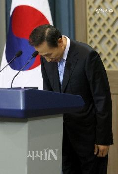 그런데 촛불보고 놀란 사람은 당시 또 있었습니다. 바로 원세훈 전 원장이 그토록 극진히 모셨던 MB 입니다. 자신만만했던 MB가 촛불집회 당시 국민 앞에 세번이나 머리를 조아렸습니다. 처음에는 일반 시민들에게 물대포를 쏘고 콘테이너 산성을 만들어 통행조차 못하게 만들더니 나중에는 그토록 좋아했던 부시 나라의 소를 30개월 이상은 수입하지 않겠다고 국민들에게 약속했습니다.